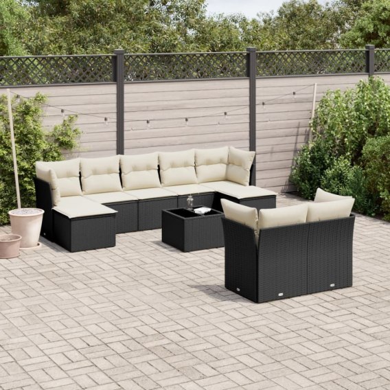 10-cz. zestaw wypoczynkowy do ogrodu, poduszki czarny rattan PE