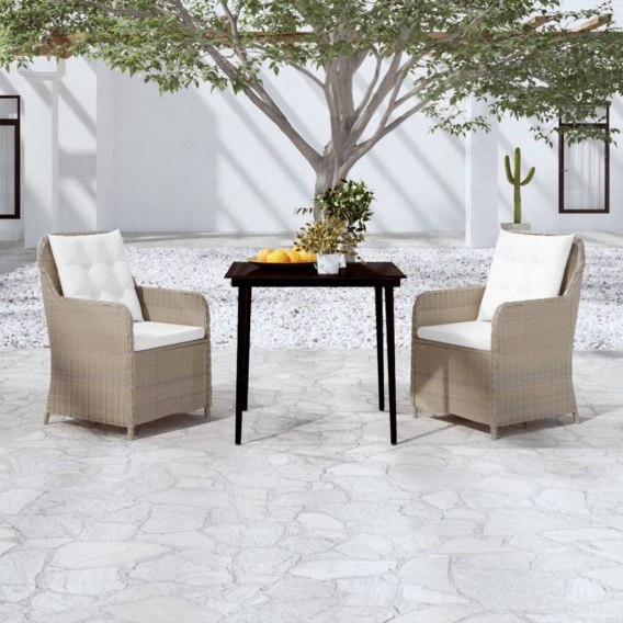 Praktyczny zestaw do jadalni na zewnątrz ma stalowe ramy, dzięki czemu jest mocny i wytrzymały. Krzesła ogrodowe wykonano z wodoodpornego i łatwego w utrzymaniu rattanu PE, dzięki czemu idealnie nadają się do użytku na zewnątrz. Ergonomiczny kształt mebli i grubo wyściełane, zdejmowane poduszki z wypełnieniem z gąbki zapewnią najwyższy komfort siedzenia. Niewymagające, poliestrowe poszewki na poduszki można łatwo zdjąć i wyprać. Ponadto gładki, szklany blat jest łatwy do czyszczenia - wystarczy przetrzeć go wilgotną ściereczką. Doskonale sprawdzi się on również do postawienia na nim posiłków, napojów i elementów dekoracyjnych.