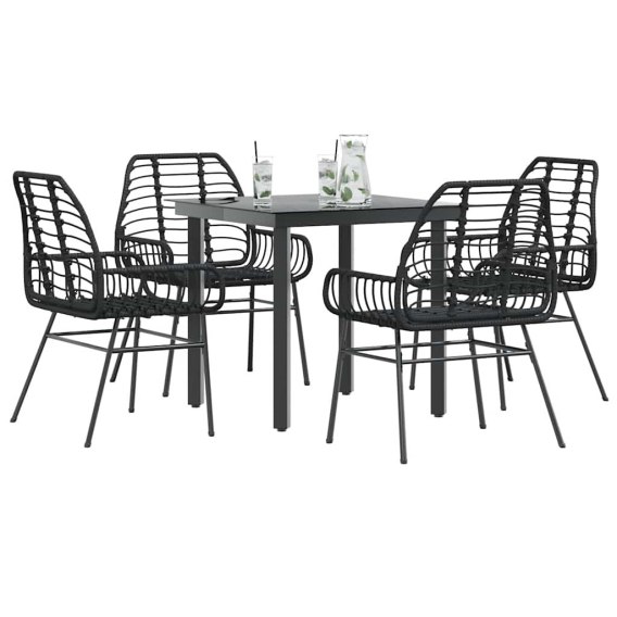 5-częściowy zestaw ogrodowy z czarnego polirattanu i szkła