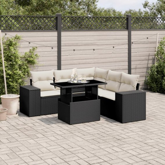 6-cz. zestaw mebli ogrodowych z poduszkami, czarny polirattan