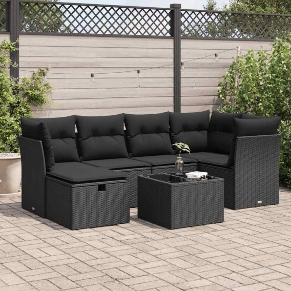7-cz. zestaw wypoczynkowy do ogrodu, z poduszkami, czarny