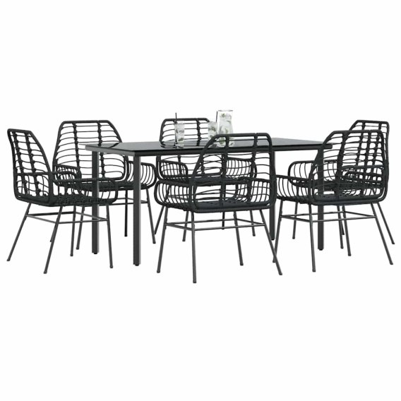 7-częściowy zestaw obiadowy do ogrodu, czarny, polirattan szkło