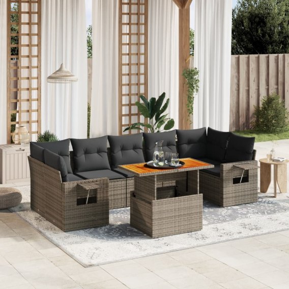 8-cz. zestaw mebli ogrodowych z poduszkami, szary, polirattan