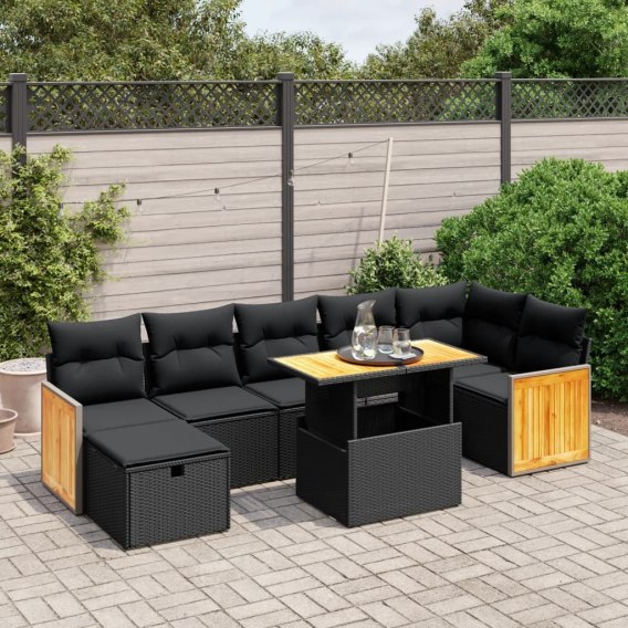 8-cz. zestaw wypoczynkowy do ogrodu, z poduszkami, czarny