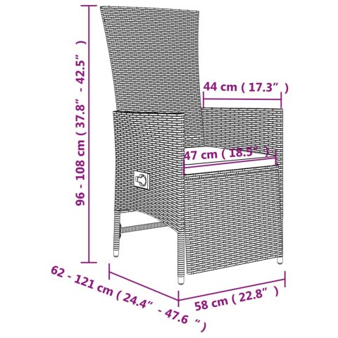 - Wymiary w pozycji do siedzenia: 58 x 62 x 108 cm (szer. x gł. x wys.)