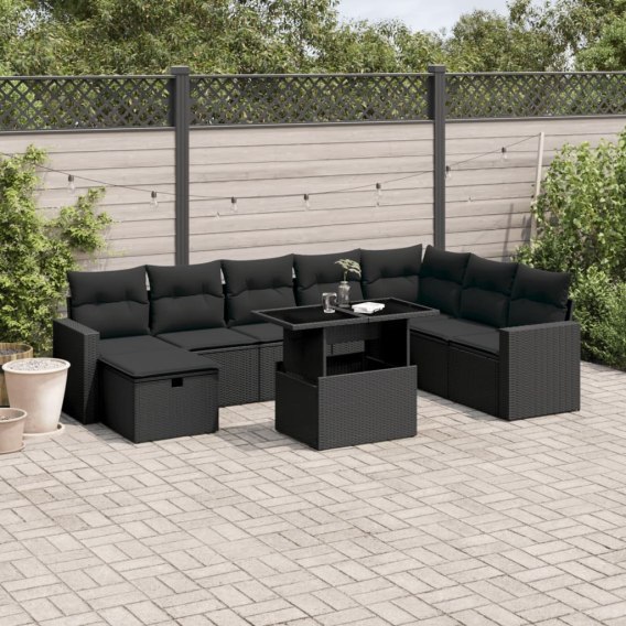 9-cz. zestaw wypoczynkowy do ogrodu, z poduszkami, czarny