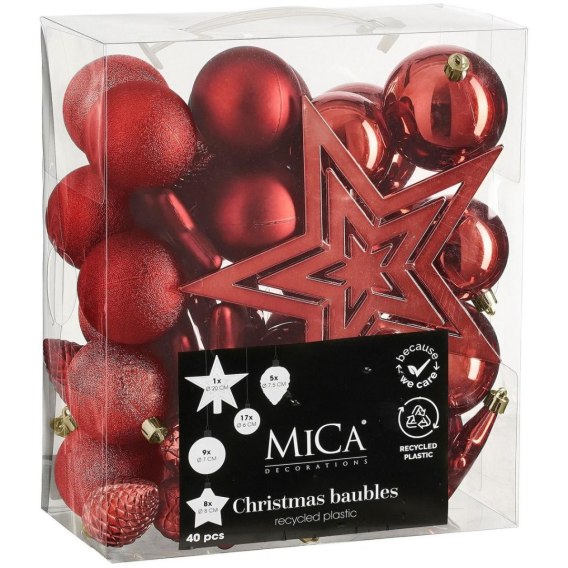 BOMBKA DEKORACYJNA PLASTIKOWA BEZPIECZNA 40SZT CZERWONY MICA to bezpieczne, nietłukące i eleganckie ozdoby na Twoją choinkę. Oryginalny kolor i różnorodne wykończenia sprawią, że święta będą wyjątkowo stylowe!