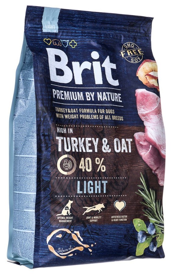 BRIT PREMIUM BY NATURE Light - sucha karma z indykiem i owsem dla psów dorosłych z nadwagą - 3 kg