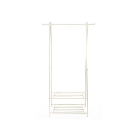 Dodaj swojemu wnętrzu lekkości i porządku dzięki temu stylowemu stojakowi na ubrania. Jego minimalistyczny design w białym kolorze doskonale komponuje się z każdym wystrojem, a praktyczne półki pomogą Ci zorganizować przestrzeń - od płaszczy po ulubione buty.