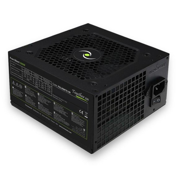 Tecnoware Free Silent. Total power: 500 W, AC input voltage: 180 - 264 V, AC input frequency: 47 - 63 Hz. Motherboard power connector: 20+4 pin ATX. Purpose: PC, Power supply unit (PSU) form factor: ATX. Product colour: Grey, Cooling type: Active, Fan dia