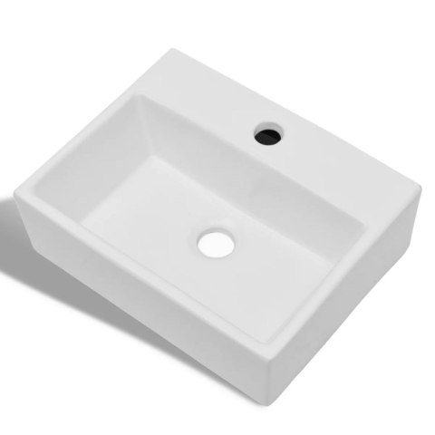 Ceramiczna umywalka z otworem na kran, prostokątna, biała