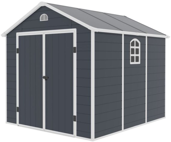Domek ogrodowy AVE może służyć do przechowywania narzędzi ogrodowych, rowerów, kosiarek, akcesoriów basenowych, drewna itp. Domek ogrodowy o nowoczesnym designie pasuje do każdego ogrodu. Domek ogrodowy wykonany jest z wysokiej jakości tworzywa sztucznego - lekkiego i wytrzymałego jednocześnie. Plastikowe słupki o grubości materiału 1,5 mm, zewnętrzne plastikowe panele o grubości 12 mm i metalowe wzmocnienia gwarantują wystarczającą wytrzymałość. Okno zapewnia wystarczający dopływ światła do wnętrza domu. Okno można łatwo umieścić po prawej lub lewej stronie domu, w zależności od potrzeb. Kratka wentylacyjna zapewnia wentylację i cyrkulację powietrza wewnątrz domku. Domek można zabezpieczyć kłódką. Domek zawiera ramę konstrukcyjną, którą można oczywiście zakotwiczyć do podstawy. Istnieje również możliwość zakupu konstrukcji podłogowej. Maksymalne obciążenie śniegiem dachu wynosi 60 kg/m2. Ochrona UV i odporność na warunki atmosferyczne. Prosty montaż.