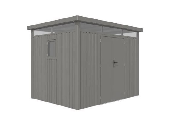 Domek ogrodowy o nowoczesnym designie pasuje do każdego ogrodu. Dom posiada dwuskrzydłowe drzwi, które można zamknąć. Wykonane z wysokiej jakości blachy stalowej o grubości 0,4 mm oraz wysokiej jakości ocynkowanej ramy stalowej o grubości 0,5 - 1,2 mm. Maksymalne obciążenie śniegiem dachu wynosi 60 kg/m2. Jedno otwierane okno. Prześwitujące górne partie paneli. System szybkiego odprowadzania wody deszczowej.