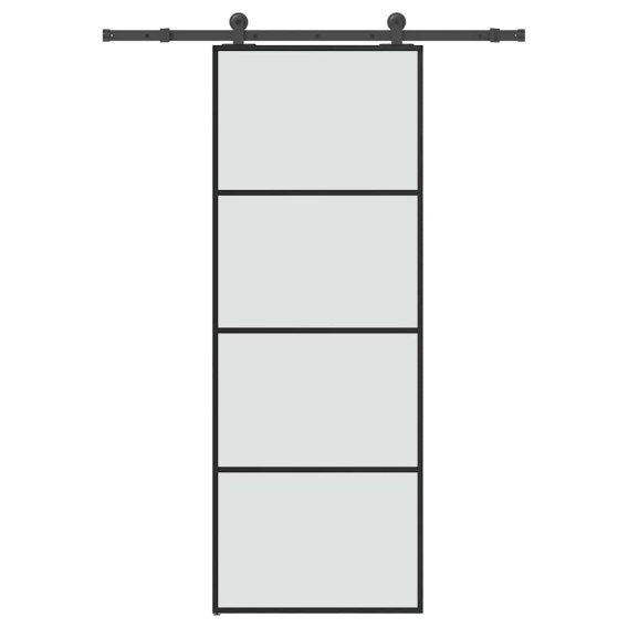 Drzwi przesuwne z osprzętem, szkło ESG i aluminium, 76x205 cm