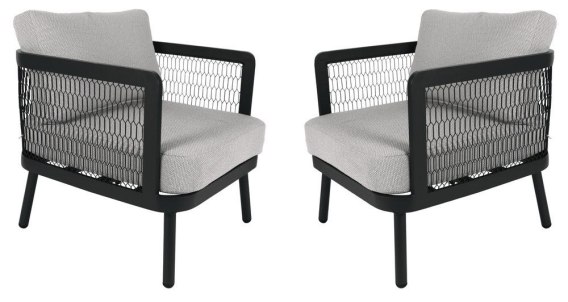 - materiał: czarna aluminiowa konstrukcja, poduszki o wysokości 12 cm, wykonane z tkaniny typu spun (poliester 460 g/m2), tkanina wodoodporna