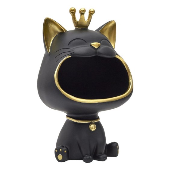 Elegancka figurka kota w odcieniach bieli i złota, która łączy estetykę z funkcjonalnością. Oprócz pełnienia roli stylowej dekoracji, posiada ukrytą przestrzeń do przechowywania drobnych przedmiotów. Idealna do ozdoby półki, stolika czy biurka, dodając uroku i porządku w jednym. Długość produktu: 16 cm Wysokość produktu: 25,5 cm Głębokość produktu: 13,5 cm Materiał: Poliresin