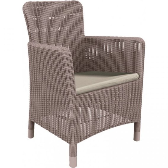 Trenton to plastikowe krzesło, które sprawia wrażenie rattanu. Krzesło jest wyposażone w poduszkę do wygodnego siedzenia. Luksusowy i nowoczesny wygląd. Długa żywotność i łatwa konserwacja.