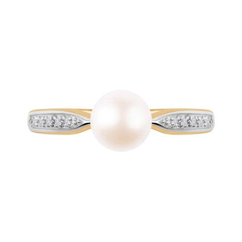 Staviori Ring. 10 Diamonds , single cut, weight 0,03 ct., colour H, clarity I1. Freshwater pearls. Yellow Gold 0,333. WARNING! It is forbidden to sell 10K gold (0,333) in Czech Republic!