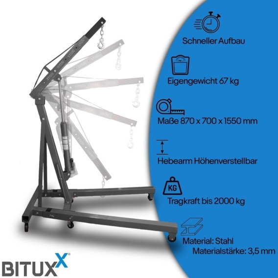 Hydrauliczny żuraw warsztatowy Bituxx do 2T