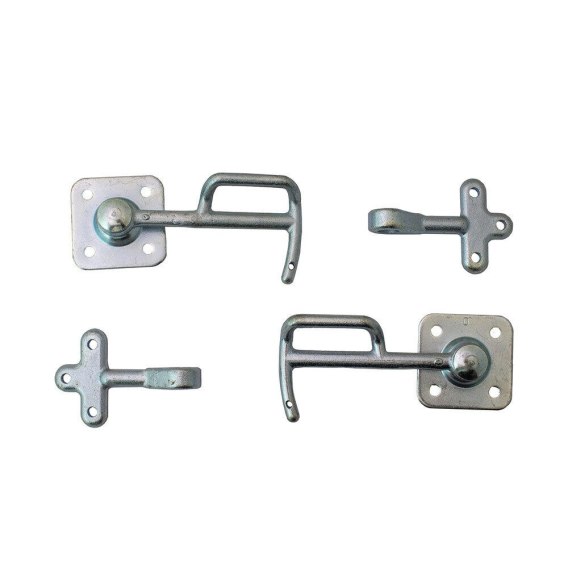 Zapięcia doskonale nadają się do blokowania paneli przyczep samochodowych.Zestaw zawiera dwa zapięcia dla lewej i prawej strony.Elementy można po prostu przykręcić do ścian przyczepy przy pomocy śrub (materiały mocujące nie wchodzą w skład zestawu).Zapięcia i oczka są wykonane ze stali ocynkowanej, dzięki czemu są odporne na warunki atmosferyczne.