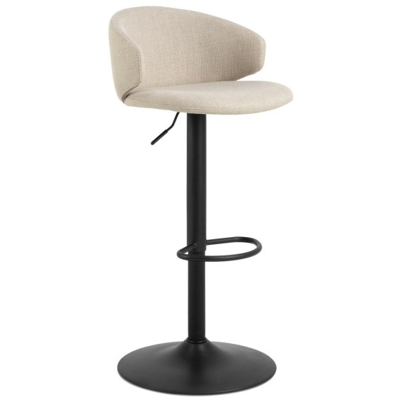 Dzięki krótkiemu, zakrzywionemu oparciu i zachęcającemu siedzisku, stołek barowy Ella o regulowanej wysokości jest przyjemny do siedzenia i patrzenia. Połączenie beżowej strukturyzowanej tkaniny i czarnej podstawy w kształcie trąbki, wzmocnione funkcją obrotową i podnóżkiem, sprawia, że jest to nowoczesna opcja siedzenia, która uzupełni każdy dom. Stołek barowy z podnośnikiem gazowym, funkcją obrotu i podnóżkiem. Podnośnik gazowy umożliwia regulację wysokości w zakresie 61-82 cm. Stabilna podstawa w kształcie trąbki wykonana ze stali malowanej proszkowo na czarno. Certyfikat FSC. Zaprojektowany przez Lasse Cha Pedersena. Wysokość oparcia 24 cm Szerokość siedziska 47 cm Głębokość siedziska 41,5 cm Wysokość siedziska maks. 82 cm Wysokość siedziska min. 61 cm Wysokość podłokietnika od podłogi 76 cm Szerokość podłokietnika 3,5 cm Głębokość podłokietnika 22 cm Wysokość podłokietnika 14 cm