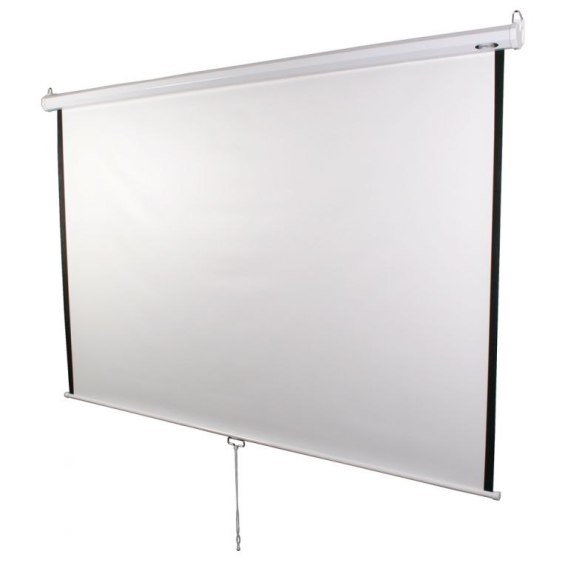 Przekątna ekranu mierzy około 113 cali, czyli około 289 centymetrów. Bez problemu ustawisz formaty takie jak 1:1, 4:3, 16:9 i wiele innych. Ekran ma współczynnik wzmocnienia 1,0, który jest zoptymalizowany pod kątem projekcji LCD i DLP. Tutaj jesteś zawsze elastyczny, tak jak podczas montażu na ścianie lub suficie. Ekran projekcyjny wykonany jest z trójwarstwowej tkaniny, którą dzięki powłoce winylowej można łatwo wyczyścić wilgotną ściereczką.