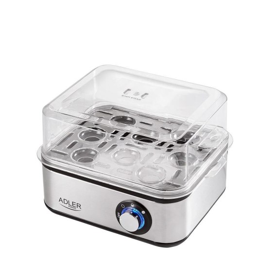 Informacje dodatkowe: Gotuj od 1 do 8 jaj każdorazowo, Wybierz, czy chcesz ugotować jajka na miękko, średnio czy twardo., Automatyczne wyłączanie z sygnałem dźwiękowym, Lampka kontrolna, Miarka na wodę z igłą do nakłuwania jajek, Foremka do jajek sadzonych, Materiał obudowy: Metal, Długość przewodu zasilającego: 82 cm, Typ wtyczki: E/F