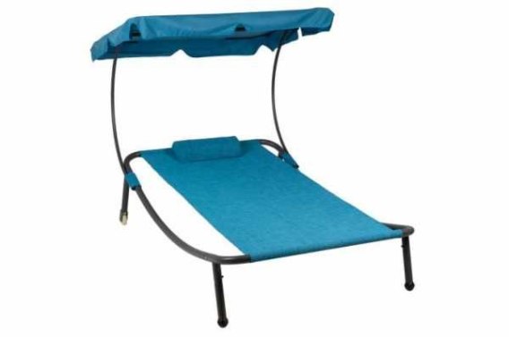Jednoosobowy leżak ogrodowy z daszkiem niebieski Divero