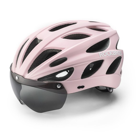 Kask rowerowy z odpinaną szybką daszkiem filtrem UV - różowy