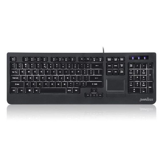 Klawiatura przewodowa Perixx PERIBOARD-313 podświetlana, touchpad, 2x hub USB, czarna