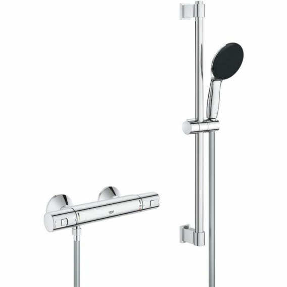 Precision Start od Grohe to kolumna prysznicowa do montażu ściennego, łącząca funkcjonalność i trwałość, idealna do modernizacji lub instalacji nowoczesnych systemów prysznicowych. Wykonana głównie z chromowanego metalu, z polerowaną powierzchnią zapewniającą odporność na korozję oraz elegancki, czysty wygląd pasujący do współczesnej łazienki. Zawiera termostatyczną baterię, która utrzymuje stałą temperaturę wody, zapobiegając wahaniom i zapewniając komfort oraz bezpieczeństwo podczas kąpieli. Jej słuchawka oferuje jednolity strumień, równomiernie rozprowadzający wodę dla wygodnego i efektywnego prysznica. Zestaw uzupełnia 60 cm drążek, ułatwiający montaż i regulację wysokości słuchawki, oraz wąż dla większej swobody i wygody. Model ten jest także zaprojektowany z myślą o oszczędzaniu wody, optymalizując zużycie bez utraty wydajności, co sprzyja większej ekologiczności w domu. Połączenie wysokiej jakości materiałów, w tym elementów plastikowych i chromowanych metalowych, gwarantuje trwałość i funkcjonalność na długi czas. Grohe Precision Start to praktyczne i efektywne rozwiązanie dla osób szukających precyzyjnej kontroli, łatwego montażu i designu harmonijnie wpisującego się w nowoczesne łazienki.