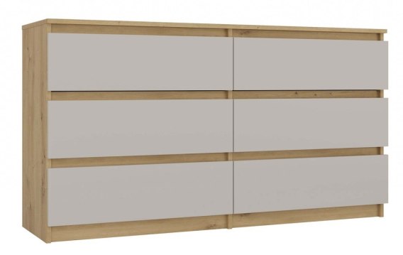 - Nowoczesny design – połączenie ciepłego odcienia dębu Artisan z Kaszmirowymi frontami nadaje komodzie elegancki i stylowy wygląd.