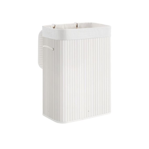 Kosz na pranie bambusowy 72 l z pokrywą, biały, 40×30×60 cm