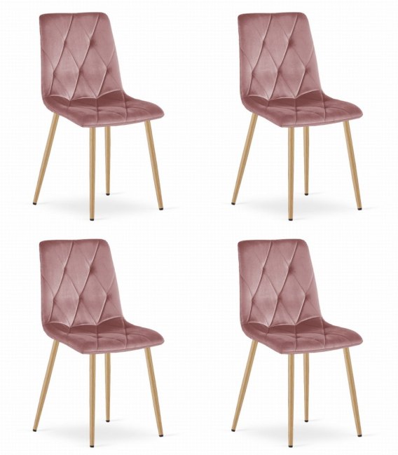 Krzesło LIBRA - różowy aksamit / nogi kolor drewna x 4