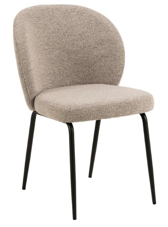 Krzesło Patricia posiada wygodne, szerokie oparcie. Tak samo jak siedzisko wypełnione jest gęstą pianką poliuretanową. Ich pokrycie stanowi tkanina Monza fabric beige 60. Podstawę krzesła stanowią cztery metalowe nogi malowane proszkowo na kolor czarny. Krzesło sprawdzi się świetnie w jadalni, restauracji czy sali konferencyjnej. Ilość kartonów: 1 Wymiary kartonów: 71x55x53,5cm Waga kartonów: 7kg