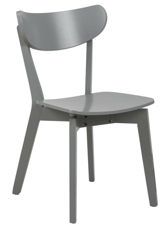 Krzesło do jadalni Roxby to klasyczne kształty w nowoczesnym wydaniu. Dzięki swemu surowemu designowi dobrze prezentuje się we wnętrzach nowoczesnych oraz loftowych. Krzesło do salonu Roxby wykonano z trwałych materiałów - oklejonej płyty laminowanej i litego drewna kauczukowego w szarym kolorze. Krzesło nowoczesne Roxby sprawdzi się w kuchni bądź salonie dzięki swoim niewielkim gabarytom. Krzesło z podstawą z litego drewna Roxby stworzy komplet ze stołem o tej samej nazwie.