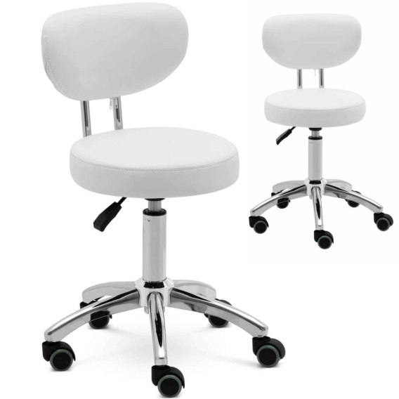 • Krzesło taboret hoker kosmetyczny z oparciem na kółkach do 150 kg ASCONA biały