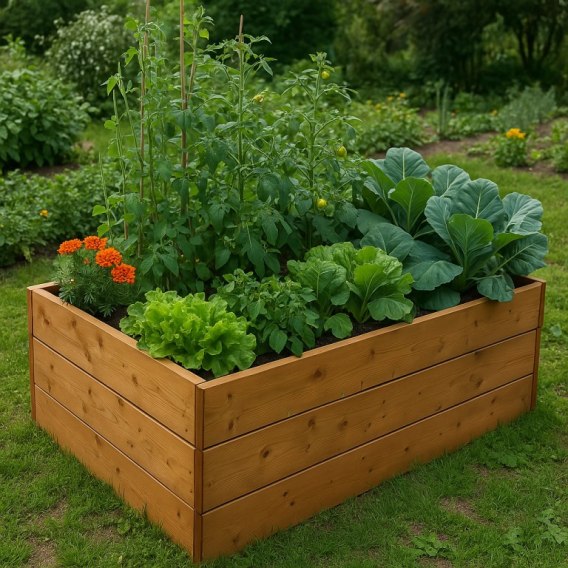 Drewniany kwietnik podniesiony dla łatwiejszej pracy i obfitych zbiorów. Wykonany jest z mocnego materiału i jest pokryty glazurą, która nie łuszczy się, nie pęka i oraz daje się pomalować dodatkowo farbą przeznaczoną do drewna. Geowłókniny są częścią opakowania. Kwietnik dostarczany jest w czterech częściach, a montaż jest bardzo prosty.