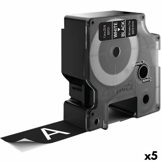 Laminowana Taśma do Drukarki Etykiet Dymo D1 53721 24 mm LabelManager™ Biały Czarny (5 Sztuk)