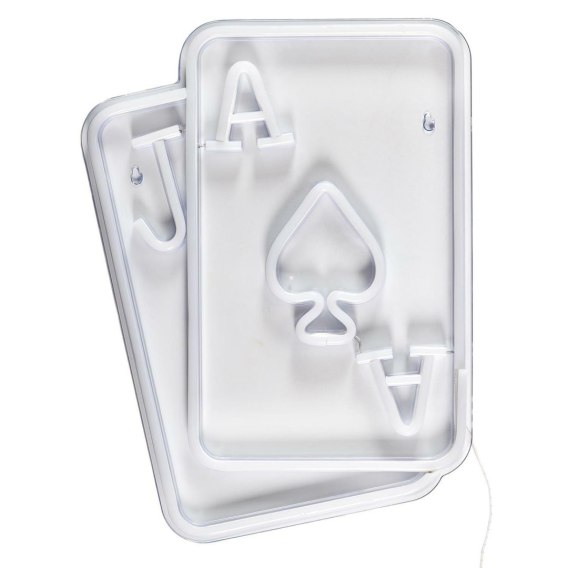 Ledowa lampa w kształcie kart do gry to prawdziwy kunszt designu, który z pewnością przyciągnie uwagę. Ta nietuzinkowa lampa, zasilana przez gniazdo USB, stanie się fascynującą ozdobą zarówno w pokoju nastolatka lub w męskiej strefie np. u barbera.. Jej neonowe napisy nawiązujące do gier karcianych mogą nazwiązywać do brydża lub innych gier towarzyskich. Lampa prezentuje się imponująco, stanowiąc nie tylko oświetlenie, ale i wyrazistą dekorację, która podkreśla indywidualny styl pomieszczenia. To nie tylko lampa, to element, który tworzy atmosferę i wyróżnia się spośród innych elementów