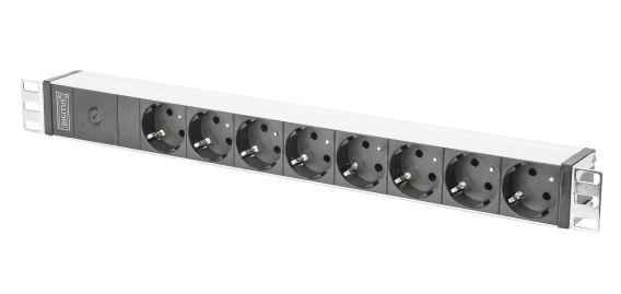 Listwa zasilająca DIGITUS PDU 19" RACK 8xSchuko kabel 2m 1xC14 16A wł./wył. zabezpieczenie aluminiowa