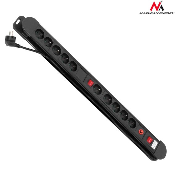 Listwa zasilająca przedłużacz Maclean MCE10 10 gniazd z 2 włącznikami czarna 1,5m 3680W