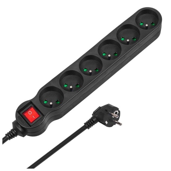 Listwa zasilająca przedłużacz Maclean MCE187 6 gniazd z wyłącznikiem czarna 3m 2300W