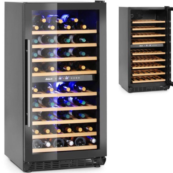 Lodówka do wina marki ARKTIC to wydajne urządzenie chłodnicze przeznaczone do długotrwałego przechowywania i ekspozycji butelek wina. Idealnie nadaje się do przechowywania trunków takich jak: Bordeaux, Cabernet Sauvignon, Shiraz, Porto, Madeira, a także Champagne Non Vintage, Prosecco, Cava, Asti. Lodówka o pojemności 232 l, a na 9 drewnianych półkach pomieści 72 butelki wina. Chłodziarka została wyposażona w cyfrowy wyświetlacz i elektroniczny termostat, który umożliwia precyzyjne ustawienie temperatury w zakresie od 5deg;C - 22deg;C. Dzięki podziałowi na dwie strefy chłodzenia z możliwością ustawienia różnych temperatur w każdej z nich, w jednym czasie można przechowywać różne gatunki win. Zastosowanie wentylatora sprawia, że chłodne powietrze rozprowadzane jest po całej komorze. Obudowa lodówki została wykonana ze stali malowanej proszkowo na czarno, dzięki czemu jest odporna na uszkodzenia mechaniczne. Obie chłodziarki zostały wykonane ze szkła hartowanego, co ogranicz utratę temperatury i daje gwarancje znacznej wytrzymałości.