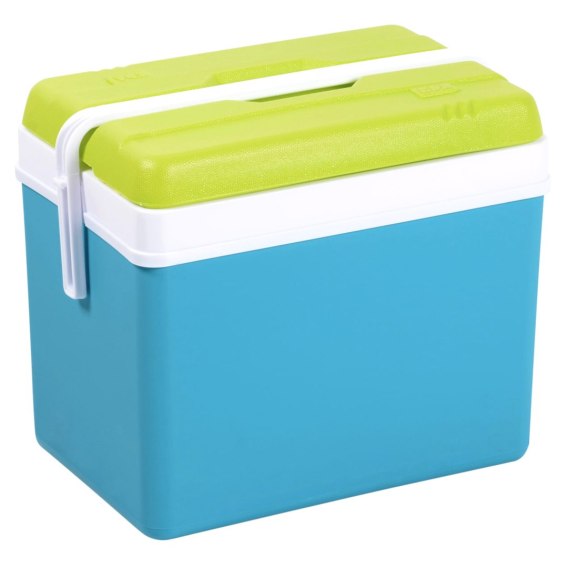 Lodówka turystyczna 35L KAMAI EDA na wkłady mrożące, turkusowa z białą rączką i zieloną pokrywą