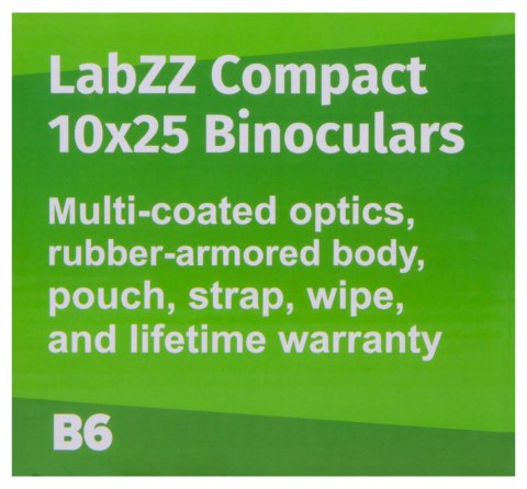 Ta lornetka została wykonana w układzie porro i ma elementy optyczne ze szkła. Układ optyczny z powłoką poprawia nasycenie kolorów oraz kontrast przekazywanego obrazu. Prowadząc obserwacje przy powiększeniu 10 razy, pole widzenia nadal pozostaje dosyć szerokie. Levenhuk LabZZ B6 to lornetka do prowadzenia obserwacji dziennych i osiąga najlepszą wydajność przy odpowiednim oświetleniu.