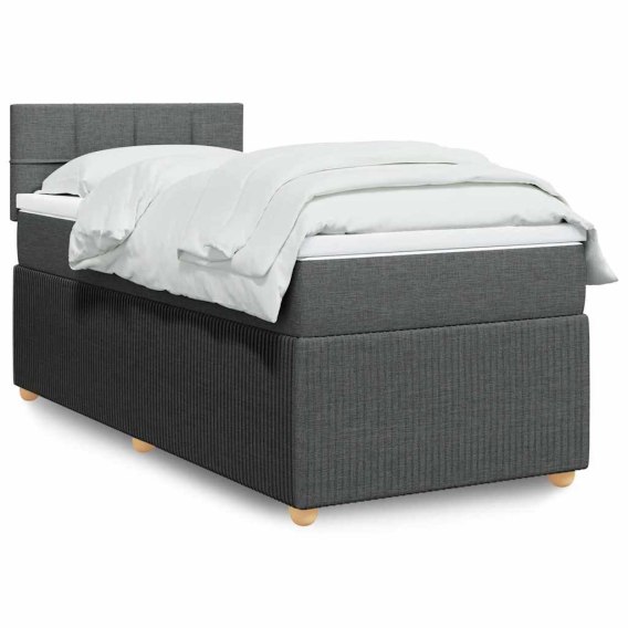 Łóżko kontynentalne z materacem, ciemnoszara tkanina 90x200 cm