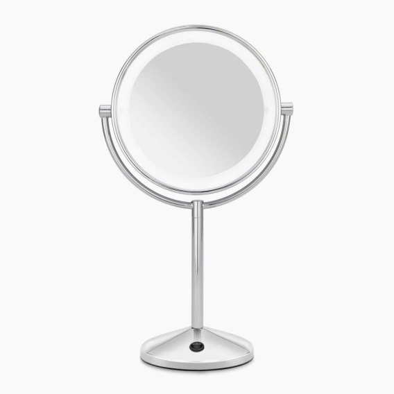 Informacje dodatkowe: Lustro dwustronne powiększenie X1/X10, Miękkie światło LED, Chromowane wykończenie, Bezprzewodowe zasilane 3 bateriami AA (brak w zestawie), Ledowe oświetlenie zapewniające ciepłą barwę światła