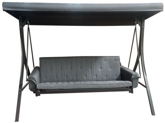 - Konstrukcja stalowa malowana proszkowo, poduszki (poliester 160 g), wypełnienie z waty poliestrowej, daszek (poliester 180 g), dla 3 osób