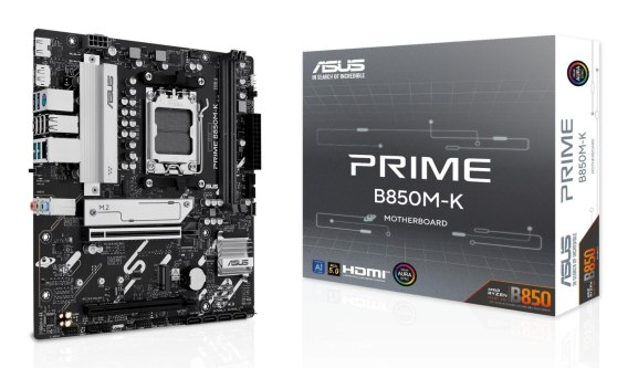 ASUS Prime series motherboards are expertly engineered to unleash the full potential of AMD Ryzen™ 9000 series processors. The PRIME B850M-K motherboard provides users and PC DIY builders with a range of performance optimizations via intuitive software and firmware features. It's designed to be Advanced AI PC-ready, offering the power and connectivity needed for demanding AI applications.